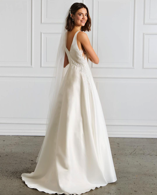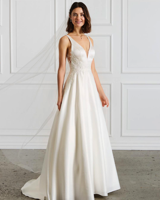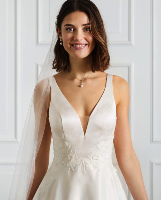4627 990,00 € TTC Nouveauté Robe de mariée en satin et dentelle. Top décolleté V finitions en dentelle. Jupe forme A en satin. Robe ivoire disponible en boutique. Partager sur 4627 4627 Morphologie Très fine, Mince, Pulpeuse, Ronde, Petite, Poitrine généreuse Style Dos nu, Dentelle, Robe en A 4627