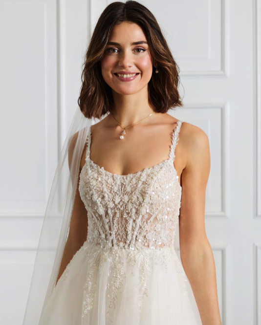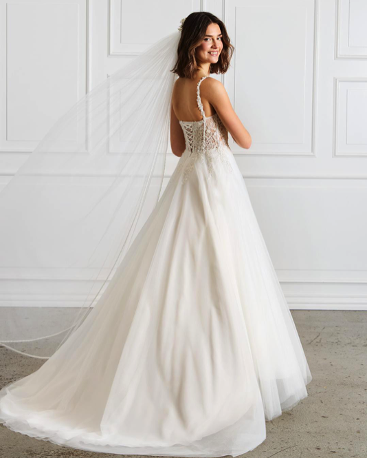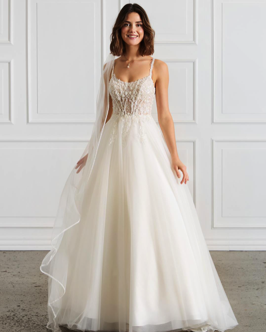 4632 1 099,00 € TTC Nouveauté Robe de mariée en tulle et dentelle. Top corseté en dentelle transparente, fines bretelles. Dos dentelle avec laçage. Jupe forme A en tulle. Robe ivoire disponible en boutique. Partager sur 4632 4632 Morphologie Très fine, Mince, Pulpeuse, Petite Style Dentelle, Robe en A 4632