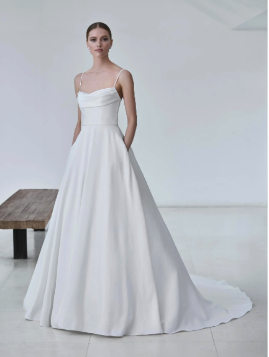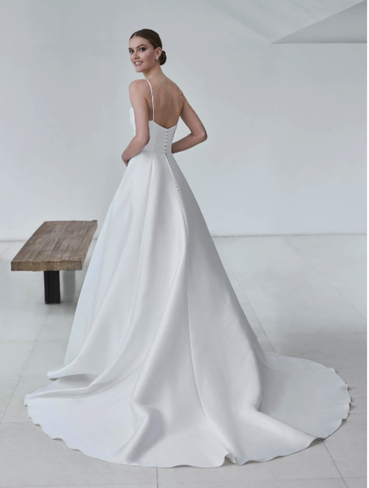 Marellia 2 100,00 € TTC Nouveauté Robe de mariée en mikado souple . Décolleté droit avec plissé et fines bretelles. Bas évasé en satin. Robe ivoire disponible en boutique. Partager sur Marellia Marellia Morphologie Très fine, Mince, Pulpeuse, Petite Style Robe en A, Robe fluide Marellia Marellia