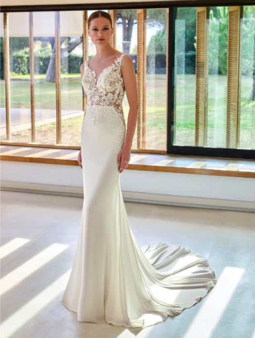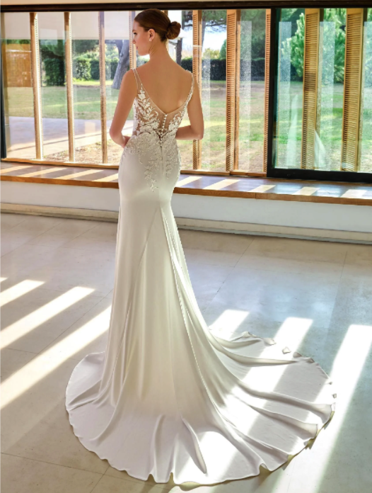 Yedida 1 890,00 € TTC Nouveauté Robe de mariée en crèpe, dentelle et pierreries. Top décolleté V en dentelle transparente. Jupe sirène en crèpe. Robe ivoire disponible en boutique. Partager sur Yedida Yedida Morphologie Très fine, Mince, Pulpeuse, Petite Style Sirène, Dentelle, Robe fluide Yedida